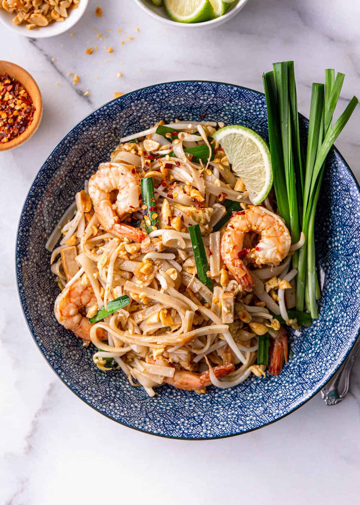 Pad Thai is a traditional Thai dish made of stir-fried rice noodles with a sweet, sour, and savoury sauce with vegetables, chicken or beef. |