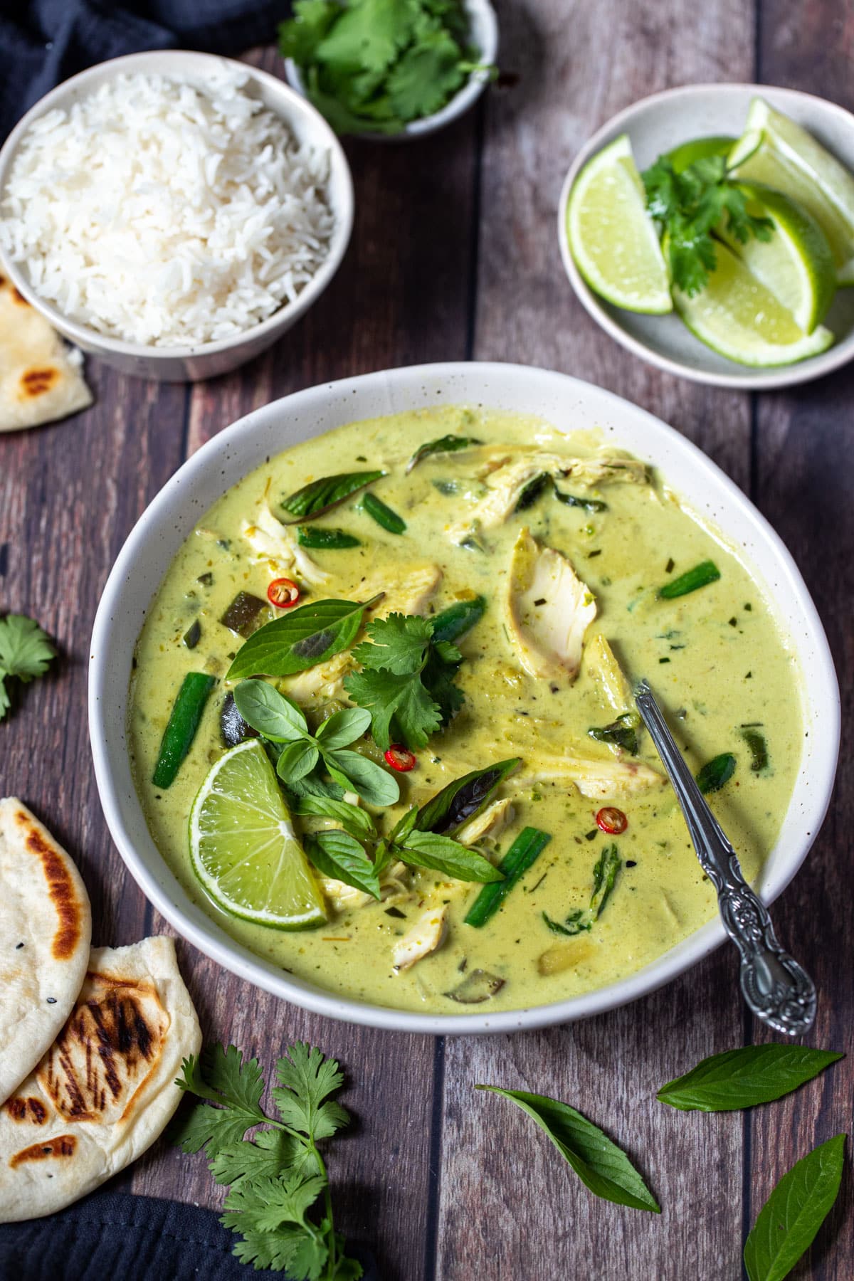 All curries contain coconut milk and served with Jasmin rice. Selection between Green Curry, Red Curry, Masaman Curry and Paneng Curry |